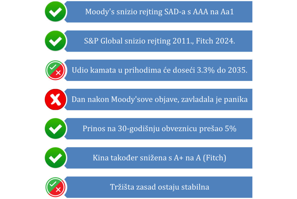 Sviđa nam se što je tekst napisan jasno i bez dramatiziranja, tako da smo mogli pratiti i shvatiti što se događa, čak i ako ne pratimo svakodnevno financijske vijesti. Autor na kraju objašnjava i razloge iza ovih poteza, primjerice zašto je Moody’s snizio rejting ili zašto su središnje banke smanjile stope, pa članak ima i neku edukativnu vrijednost. Sve u svemu, mislimo da je ovaj tekst dobar pregled važnih događaja na svjetskim burzama i pomaže bolje razumjeti kako velike ekonomske vijesti utječu na tržišta.
